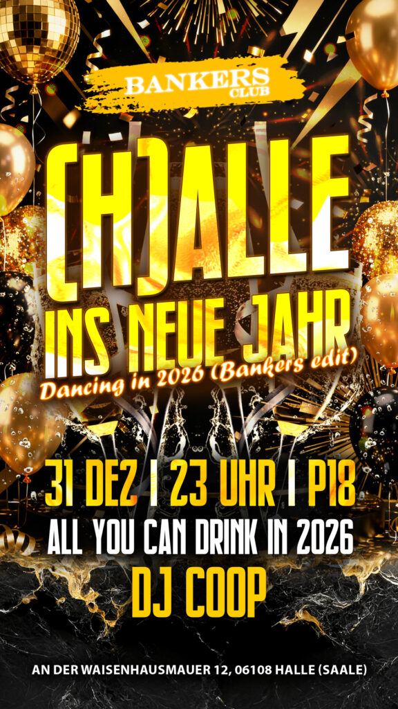 At the BANKERS Club Halle, a historic bank building with an original vault room, up to 500 guests experience a nightlife that’s unmatched in the club scene. A sophisticated atmosphere, top-notch sound, and rotating events create a vibe that unites every music genre and turns every moment into a highlight. Across two floors, the pure club experience unfolds each week – exclusive, diverse, unforgettable.